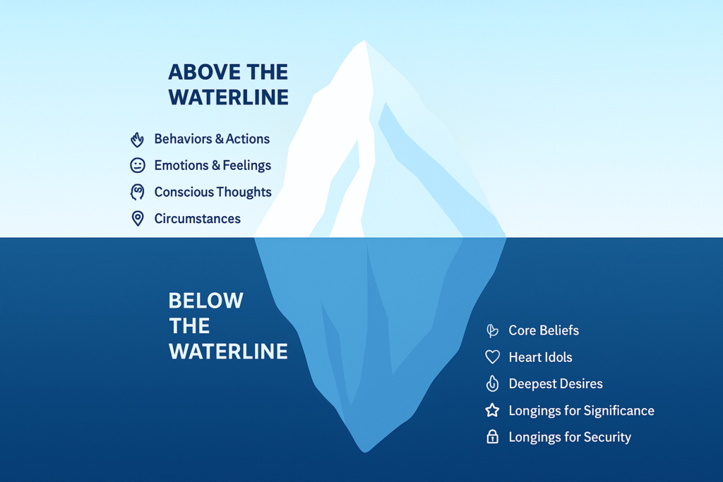 When we only address “above the waterline” issues—trying to change behavior without addressing heart beliefs—we’re practicing mere behavior modification. We tell ourselves to “try harder,” “be more disciplined,” or “just stop doing that.” This approach is exhausting, produces either pride (when we succeed) or despair (when we fail), and doesn’t produce lasting change.